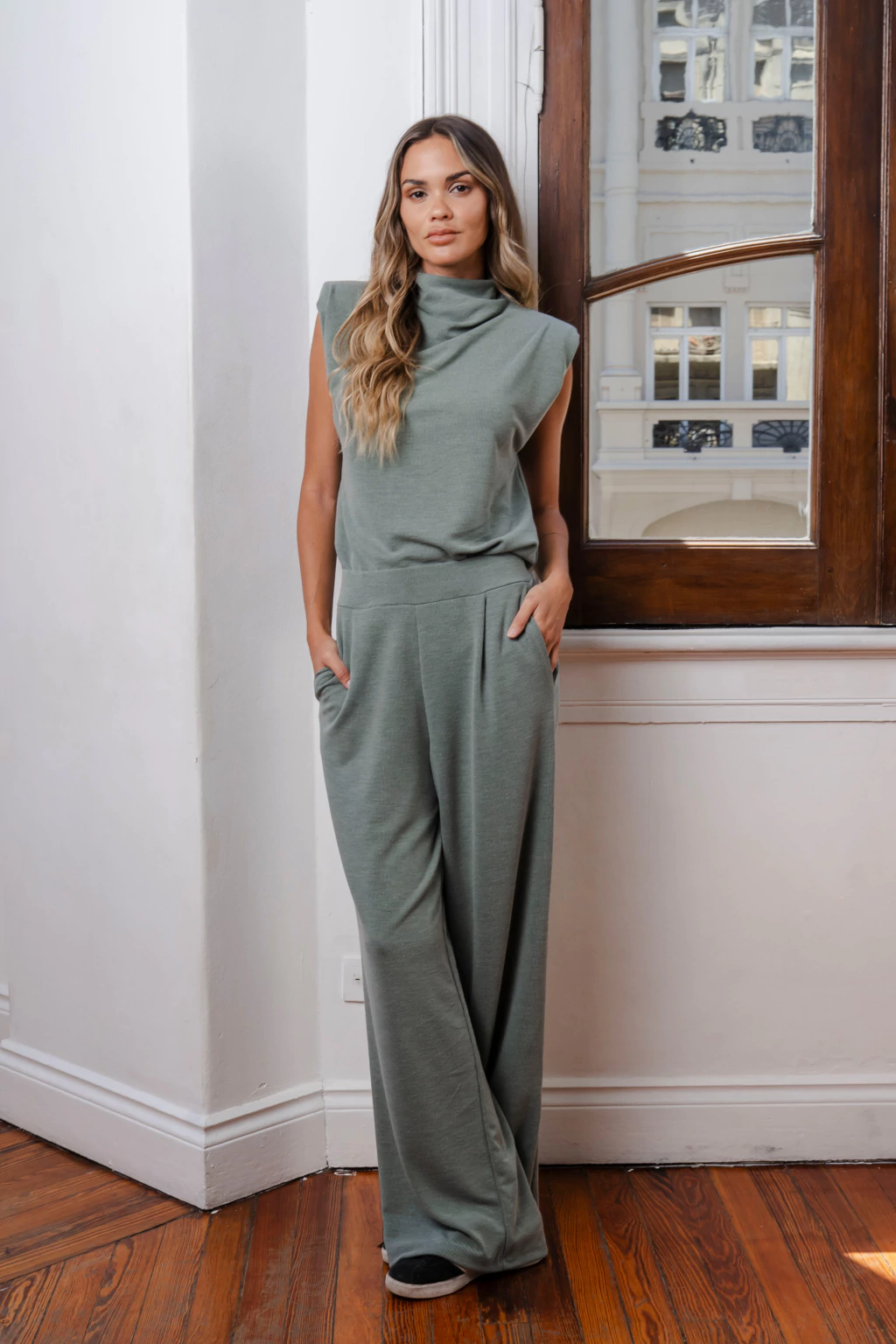 Polera de lanilla con cuello volcado. El escote tiene una torcion en el centro aportandole un gran detalle de diseño.