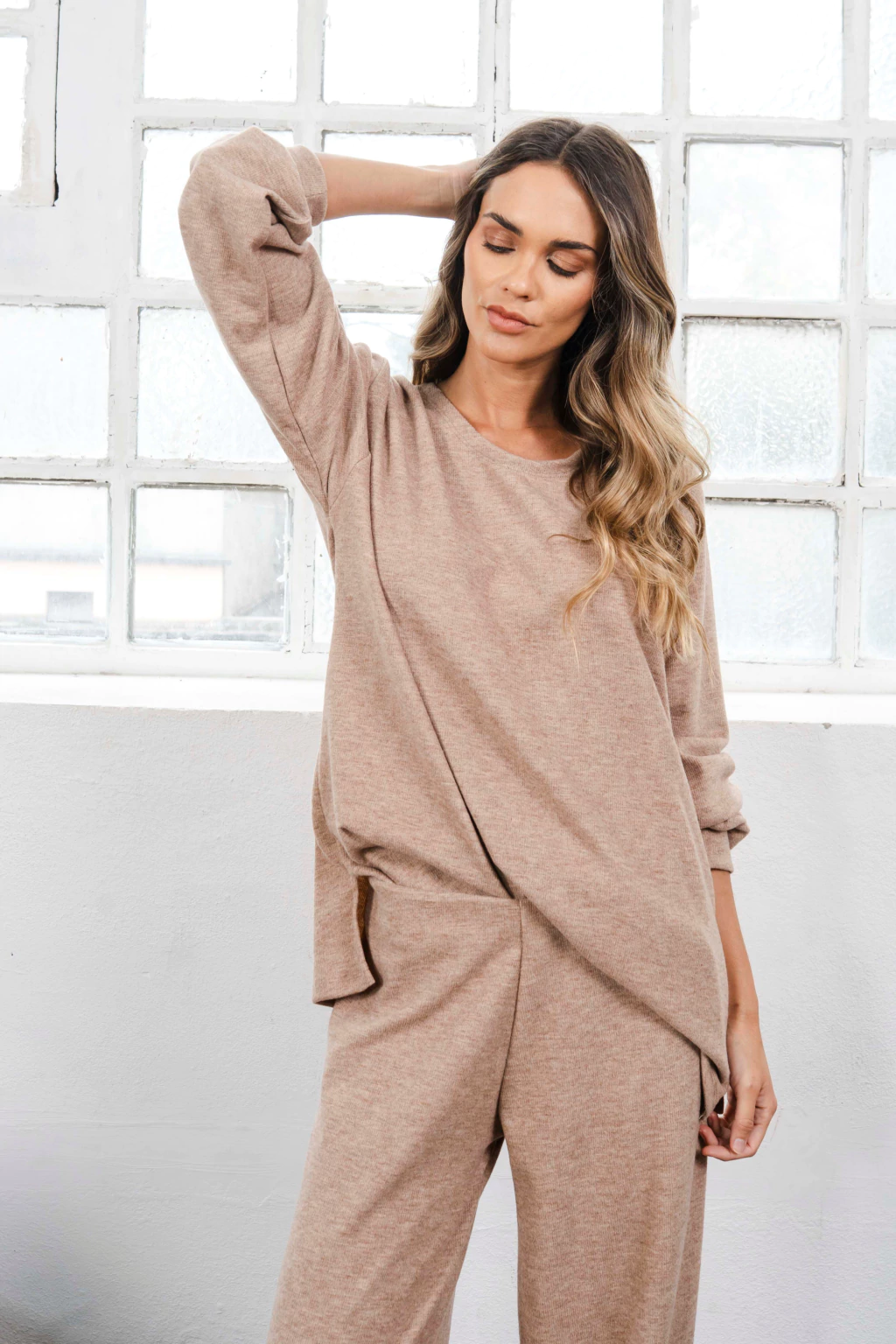 Buzo escote semi en V, con puños ajustados. Confeccionado en tejido de calidad premium, lanilla angora, con pequeña textura morley. Gracias a su calidad angora es super suave con una caida sedosa y pesada.